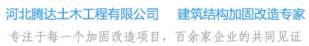 河北騰達土木工程有限公司總部設在河北省省會石家莊市,是經石家莊工商行政管理局批準注冊的科技型建筑企業,具有特種專業工程專業承包資質,是工程抗震與加固改造全國理事會理事單位。集科研、設計、施工于一體。